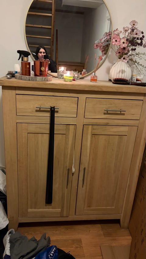 Rustikt træbord med metal ben sælges