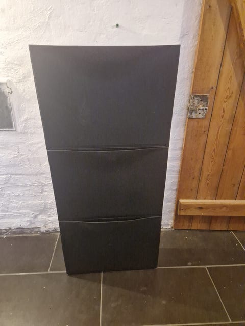 Reol med 2 sorte stofkasser