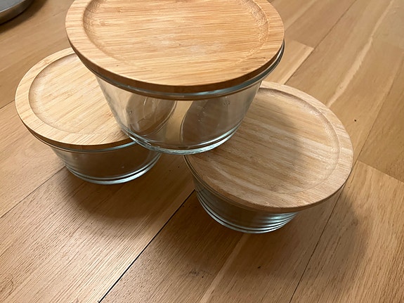 Glasbeholder med trælåg