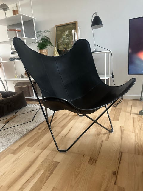 Flagermusstol i sort læder Cuero