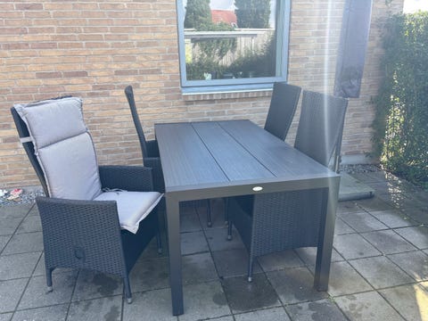 Havebord med stole og hynder