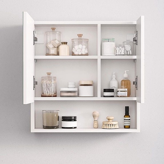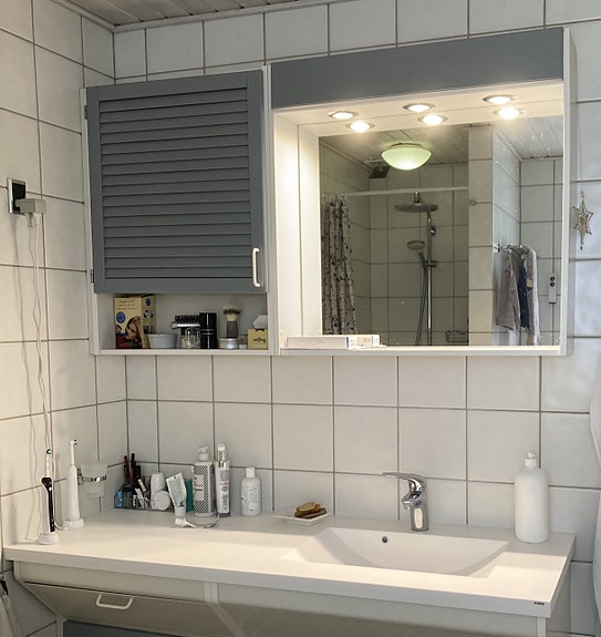 Væghængt skænk og overskab med lys