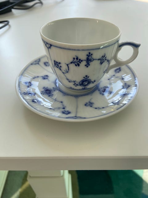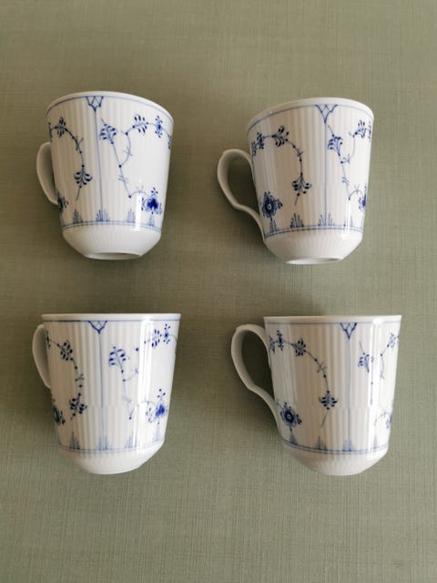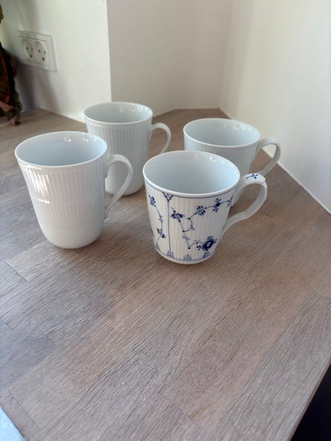 Royal Copenhagen Musselmalet halvblonde Tallerkener, hvid halvblonde og riflet