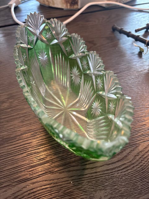 Grønt skåret glas skål