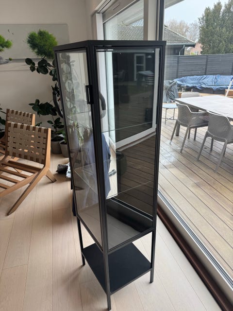 Sort skoskab med pyntehylder