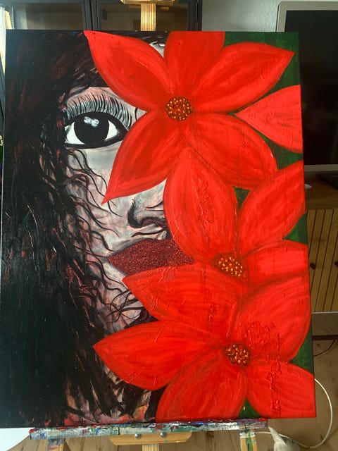maleri akryl blomstermotiv