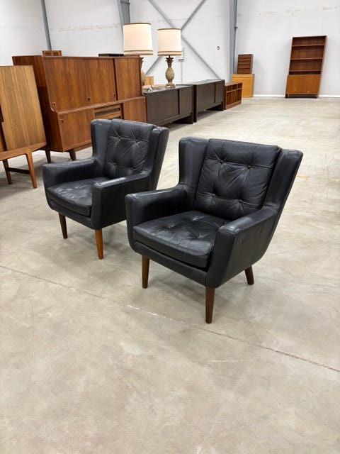 Vintage læderlænestole sæt