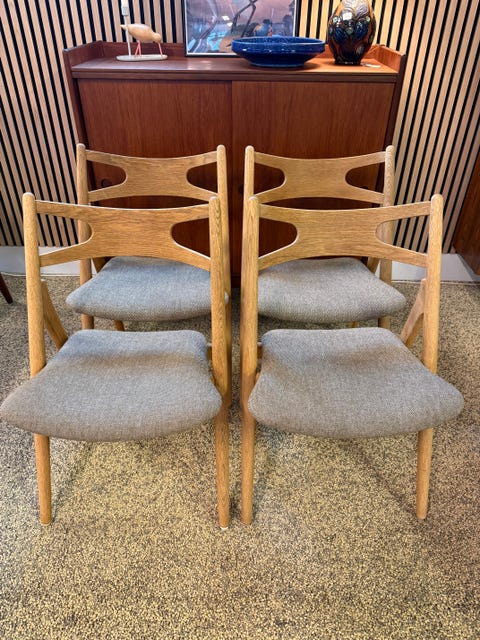 Sæt med 6 Hans Wegner CH33p stole i eg