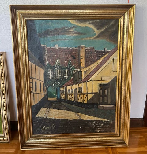 Maleri af bindingsværkshus