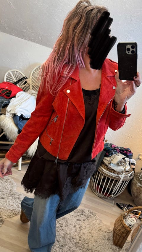 Rød Bikerjakke