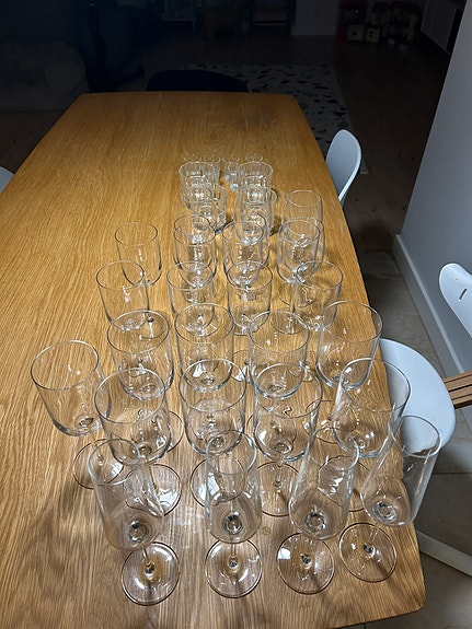 Skab med glas hylder.