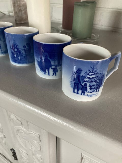 Royal Copenhagen Tekande og Kaffekopper med Underkopper Porcelæn Blomstermønster
