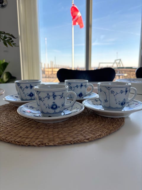 Mågestel 5 Blå og hvide kaffekopper og tallerkener fra Bing & Grøndahl (str. ...