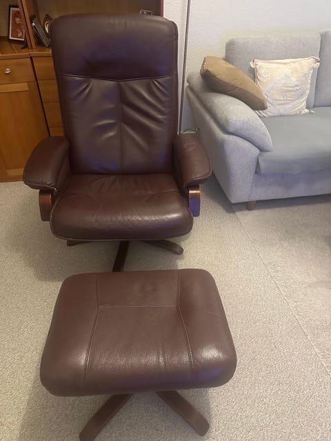 Læder lænestol m/skammel.