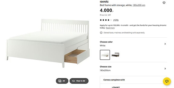 Dobbeltseng, Malm, b: 180 l: 200