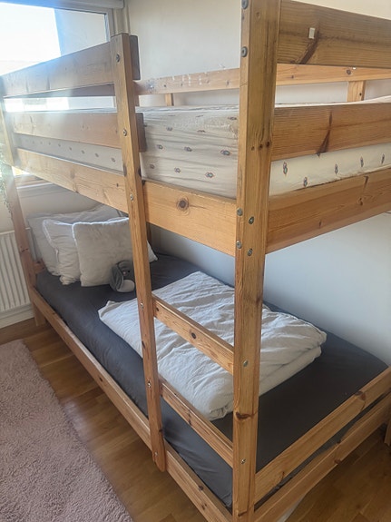 Køjeseng i massivt fyrretræ