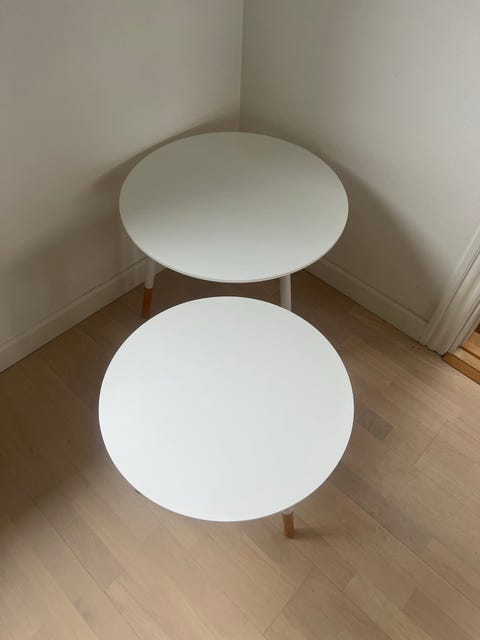 2 hvide sofaborde.