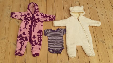 Om vinteren kan små børn holdes varme ved at klæde dem godt på: uldne heldragter, sokker, handsker, huer og overtøj. En flyverdragt er ofte hurtigere at tage på end separate jakker og bukser, og sne kommer ikke så nemt ind. I annonce(r)ne bør du tjekke tilstanden af overtøjet, fx hvor godt manchetter og ben kan strammes, om tøjet har mange reflekser, og om det er vandtæt.