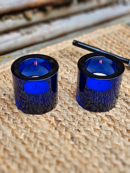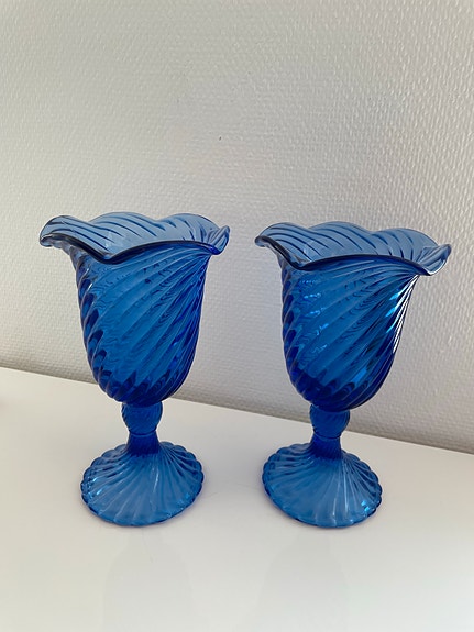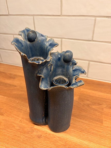 2 stk store blå lysestager
