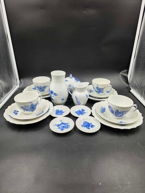 Royal Copenhagen - Kaffesæt til 4 (19) - „Blue Fluted" - Porcelæn - „Blue Flu...
