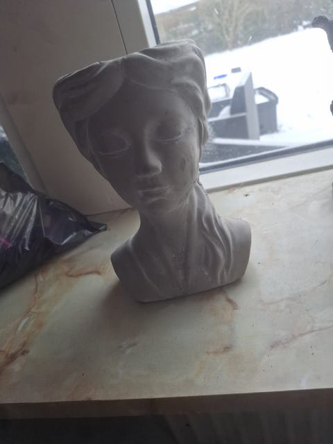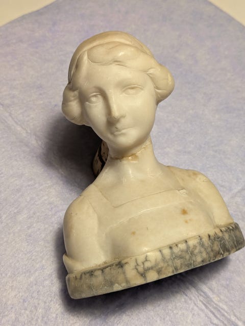 Antikt kvindehoved i alabast