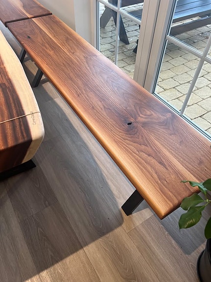 Specialdesignet bænk i massiv valnød