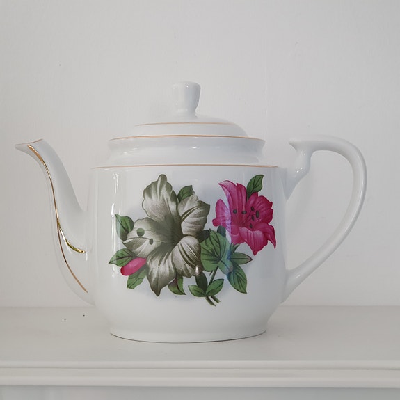 Tallerken med blå blomst