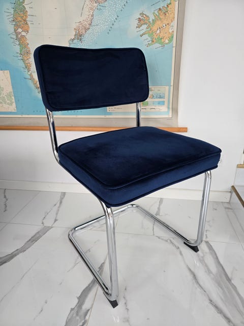 6 stk syver stole 3107, nypolstret i cognac semianilin læder. Sædehøjde 44,5 cm.