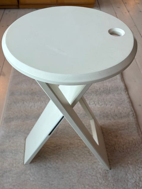 Fin skammel med skindsæde