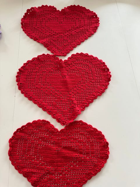 Røde hæklede julehjerter