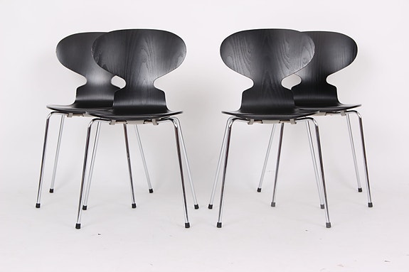 5.000 kr.Arne Jacobsen 3101, 4 Myre sorte stole Fritz HansenRødding2.6.25Design ClassiqueFøj til favoritter.