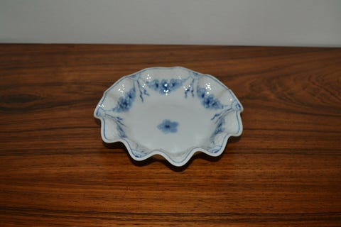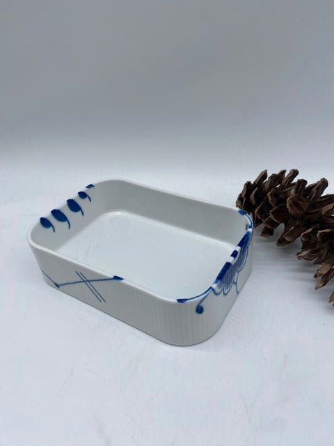 Royal Copenhagen porcelæn, blå mega musselmalet riflet firkante skål. Nr. 556.