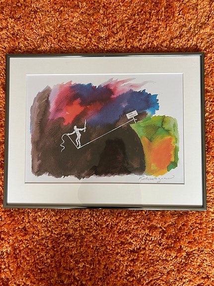 Signeret litografi, Kan ikke tydes, motiv: Heste