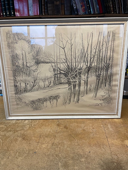 Landskabsmaleri med træramme