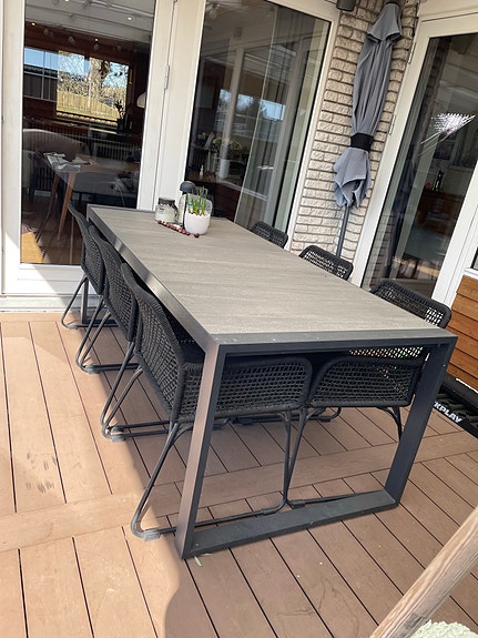 Havebord med 6 flettede stole