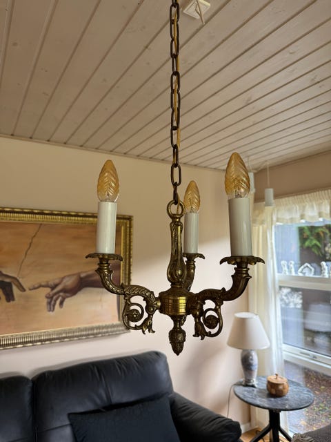Messing lysekrone med 3 arme