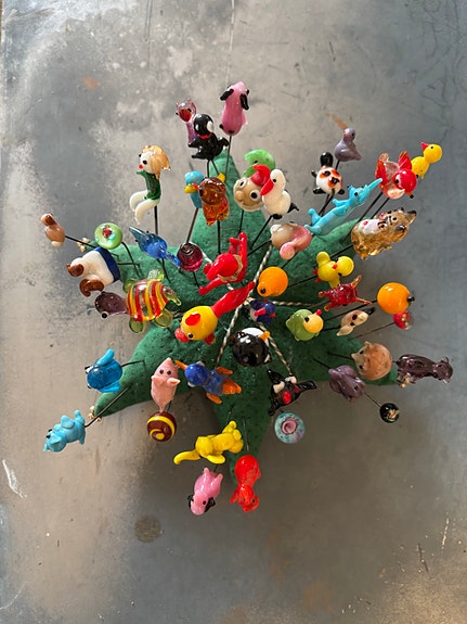 Gamle nipsenåle i glas