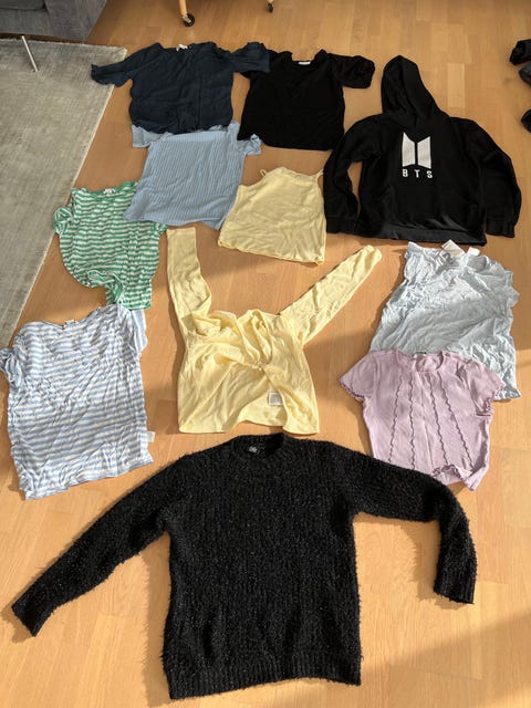 Som voksne med børn ved, er lyden af vaskemaskinen en fast del af hverdagen. T-shirts, skjorter og toppe skal, ligesom mange andre beklædningsgenstande, opbevares i store mængder i garderoben, så vaskemaskinen ikke skal køre konstant. Når du køber brugte skjorter og toppe, er den samlede pris billigere. Børnetrøjer er ofte lavet af bomuld. En brugt bomulds-t-shirt kan være særligt behagelig for et barn med sart hud, da den ofte føles blødere.