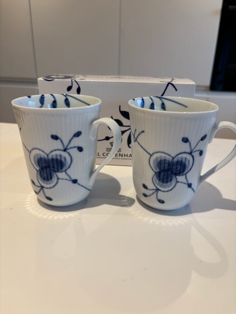 Royal Copenhagen Blå Mega Riflet Krus 2 stk. 36 cl - porcelæn - koboltblå/hvid
