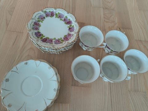 Porcelæn med lilla blomster