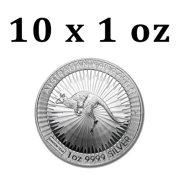 Australien. 1 Dollar 10 x 1 oz $1 AUD Australian Silver Kangaroo Coin (Backda...