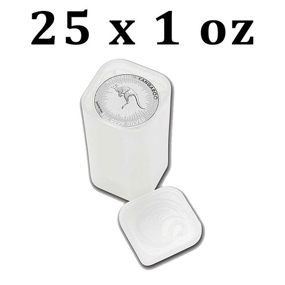 Australien. 1 Dollar 25 x 1 oz $1 AUD Australian Silver Kangaroo Coin (Backda...