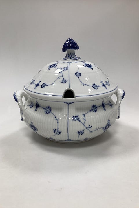 Royal Copenhagen Musselmalet Riflet Porcelæn Tallerken og Skål Sæt Blå og Hvid