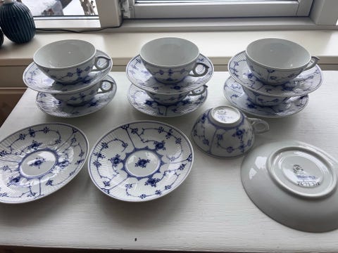 Royal Copenhagen Musselmalet Riflet Tekop og Underkop Sæt Blå og Hvid Porcelæn
