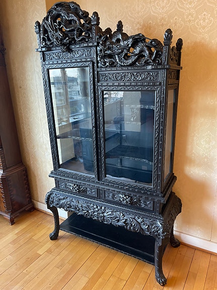 Vitrine skab træ glas sort udskåret
