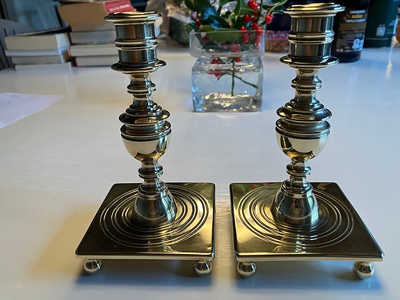 2 gamle, engelske lysestager