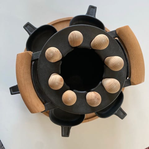 Fondue-sæt i støbejern og træ til ostefondue, shabu shabu eller sprøde småretter