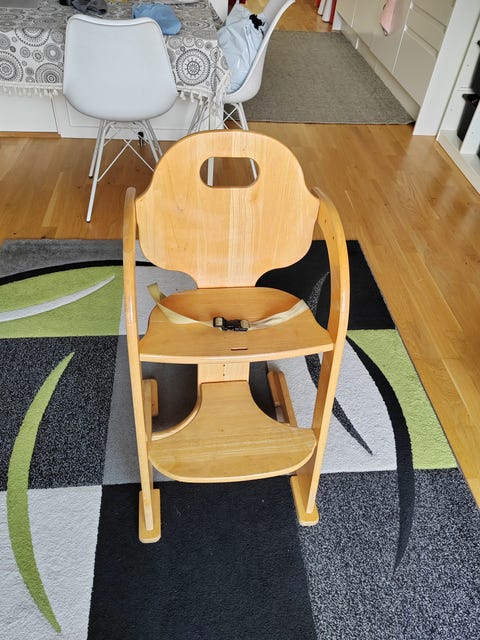En god højstol er robust og nem at løfte barnet op i. Højstolen skal let kunne placeres ved spisebordet. Nogle højstole kan også justeres til større børn. Mange højstole har også en fastgjort bakke – den kan være praktisk til f.eks. servering af fingermad. Hvis du overvejer at købe en højstol brugt, så tjek annoncen for højstolens maksimale vægt, og om den har en sele eller et bælte for at forhindre fald. På DBA skifter mange børnestole, såsom små lænestole og børnegyngestole, nemt hænder.