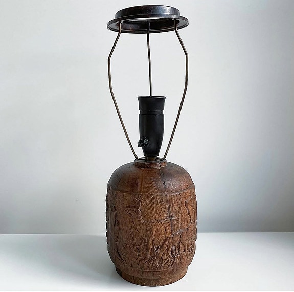 Bordlampe. Udskåret trælampe