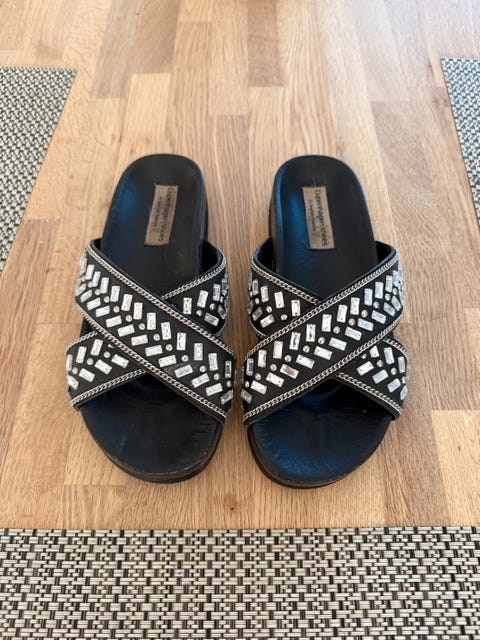 Slippers med kilehæl